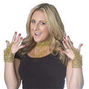 Egyptian Beaded Choker is made of gold beads on elastic thread. Delicate dangles edge the front of the choker. One size fits most. Band is 1″W. Goes great with the 9405 Egyptian Ring Bracelets!