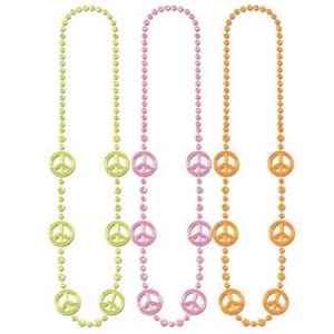 Funky Peace Bead necklaces for party favors or hippie styling. 3 pieces. 36″L
