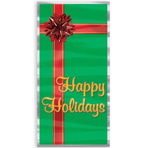 Happy Holidays Door Cover is a decoration made of vinyl plastic, suitable for indoor or outdoor use. Great for personal, business or school use. 30″x51″