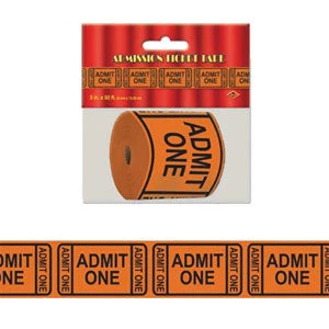 Admission Ticket Tape decorating roll is made of all-weather poly. 3″x50′
