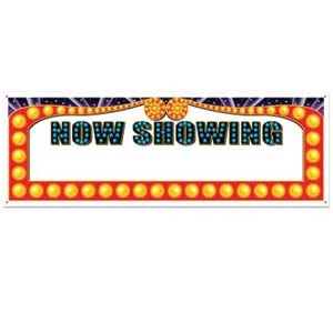 Now Showing Sign Banner has a blank area ready for your personalization. All-weather material with grommets for hanging. 21″H x 5’WNOTE: We do not personalize items.
