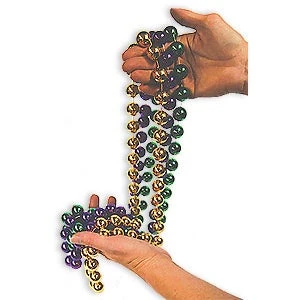 Big Beads are an assortment with Mardi Gras colors. 3 pcs. 12mm. 48″L