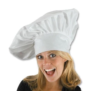 Large Chef Hat will show who is the culinary head of the kitchen! 100% Polyester. Stretch band for sizing. 13″H*Helpful Hint: Stuff with paper for desired effect.