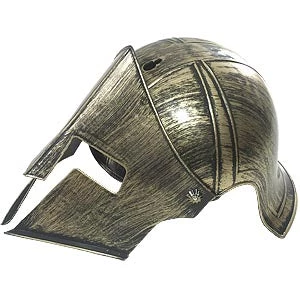 Medieval Warrior Helmet in sturdy antiqued plastic. The look of Greek hero Achilles. Great for Roman Knight, Trojan war Lord or Spartan Warrior. Moving face guard. One size fits most.