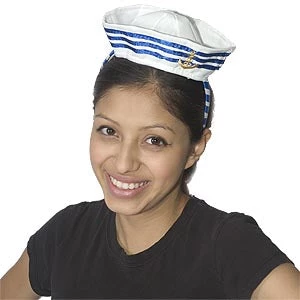 Mini Sailor Hat Headband is an adorable headpiece for maritime performance. Perfect for dance recitals, school performances, theme days or giveaways. White nylon coated headband with blue ribbon striping. One size fits most. 6″W x 3″H