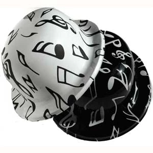 Musical Note Derby is a classic bowler style hat made of thin plastic. Great party or giveaway hat. Assorted black & white, no choice. One size fits most.