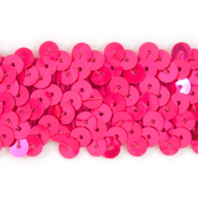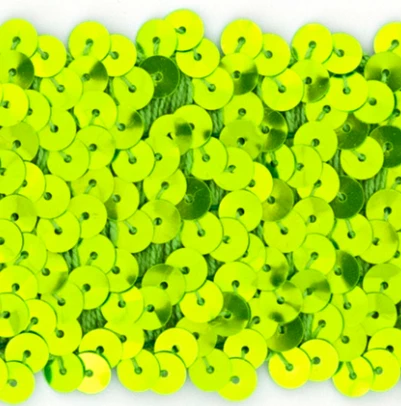 2″ Fluorescent Sequin (Stretch) Braid is sold by the yard, 36 yards on a spool. Blacklight trim.