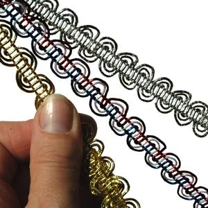 Metallic Stretch Trim is scallop gimp on stretch thread. Sold by the yard.