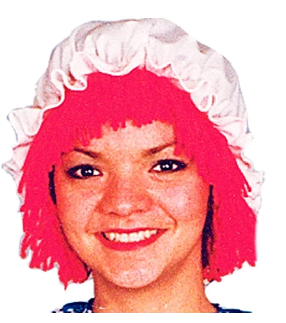 Raggedy Ann Wig in the classic bright red color with mop cap. Makes the perfect rag doll. Real yarn construction.