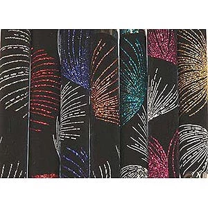 Slinky with Fireworks Glitter is a 4-way stretch fabric. It is 58″ wide, 95% Acetate, 5% Spandex, and sold by the yard.
