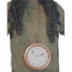 Rapper’s Clock Necklace in plastic. Great for Alice in Wonderland or Wizard of Oz too! Actual clock style or face may vary. 8″Dia.
