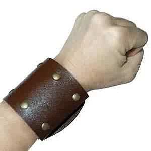 Roman Wristbands are leather-like bands with snap closures. Sold by the pair.