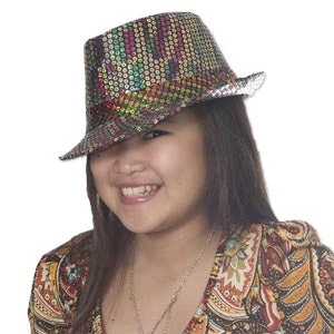 Sequin Mardi Gras Fedora is soft side hat covered with spotlight sequins in mardi gras covers. Flashy and fun for dance, parties or a perfect topper for your Mardi Gras celebration. One size fits most.