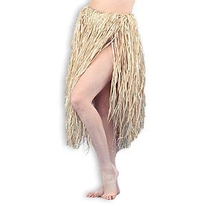 Raffia Hula Skirt made of natural raffia. One size fits most with tie waist. 31″W x 28″L