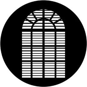 Shuttered Arch pattern gobo. Standard size “B” stainless steel disc made to fit an ellipsoidal fixture with a 6″ lens and a 4 1/2″ gate.Gobo patterns are used to suggest scenery, create atmosphere and enhance the visual impact of your lighting design. To browse the entire line of designs, visit www.rosco.com.