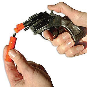 Snubnose Pistol w/Silencer is die cast metal. Takes 8 shot caps.