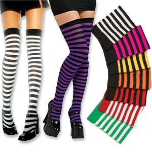 Striped Thigh Highs are a poly/nylon blend. One Size fits most 90-160lbs.