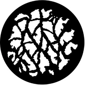 Twigs pattern gobo. Standard size “B” stainless steel disc made to fit an ellipsoidal fixture with a 6″ lens and a 4 1/2″ gate. Gobo patterns are used to suggest scenery, create atmosphere and enhance the visual impact of your lighting design. To browse the entire line of designs, visit www.rosco.com.