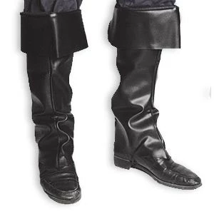 Black vinyl fabric boot spats with cuffs are 17″ tall. Worn over shoes.