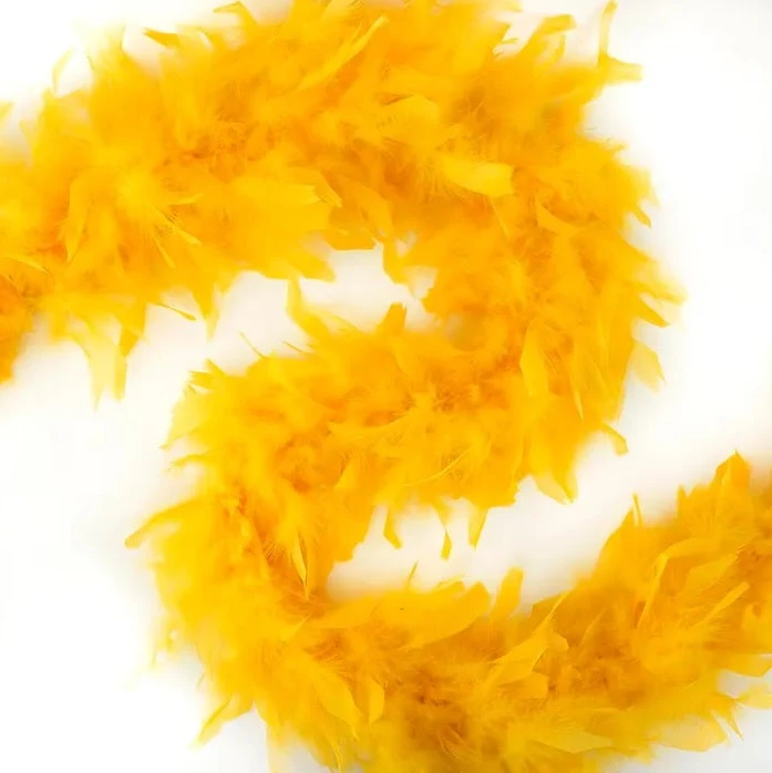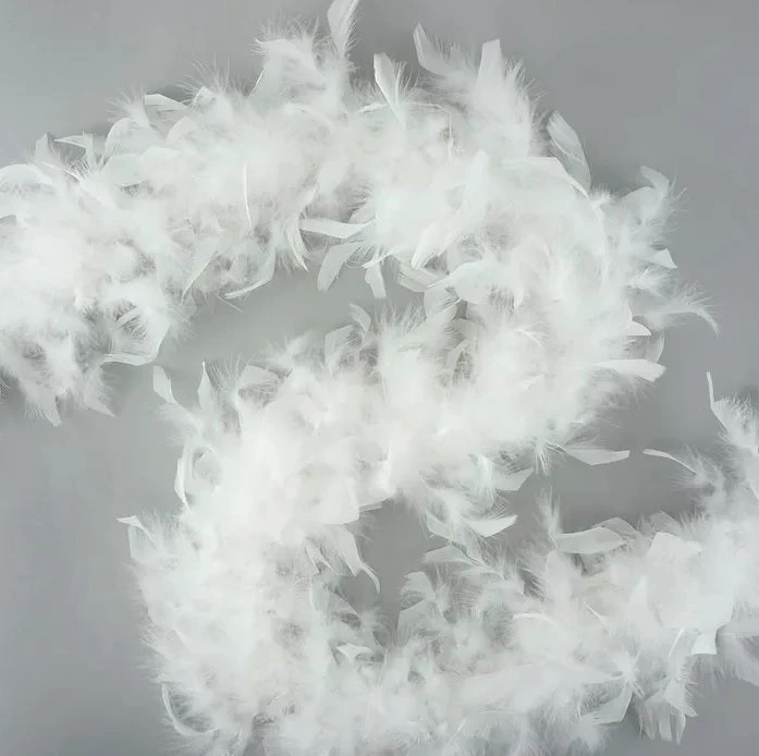 Chandelle Boa Light is a lightweight boa perfect for trimming costumes or creatively accenting table decor. It’s an ideal accessory for a flapper girl or to just “dress-up”. Sold by the 2 yard piece. 40g (approx 4″ diameter) NOTE: Color may vary. No guarantee on color fastness of dyed feathers.