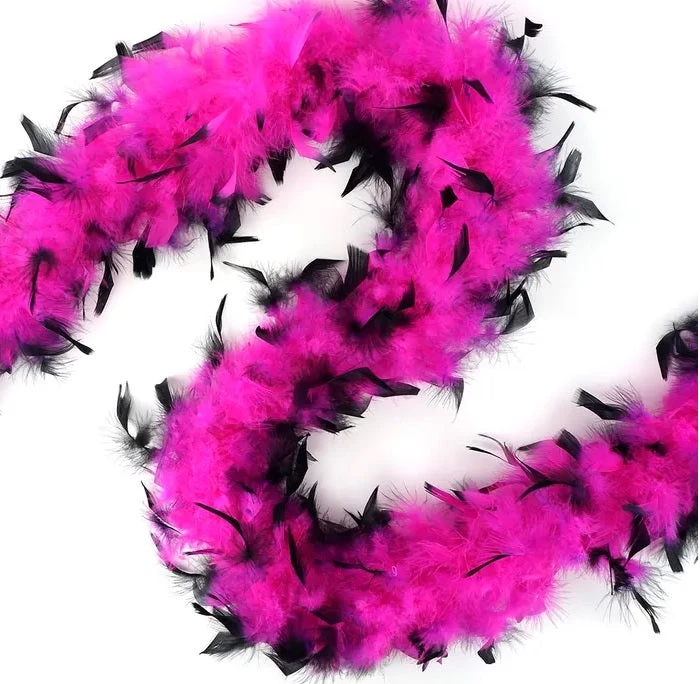 Glamorous chandelle turkey feather boa is accented with dyed tips. Full and luxurious quaility suitable for dress, costuming, decorating or stage and theater. 100gr. 2 yard piece.NOTE: Color may vary. No guarantee on color fastness of dyed feathers.