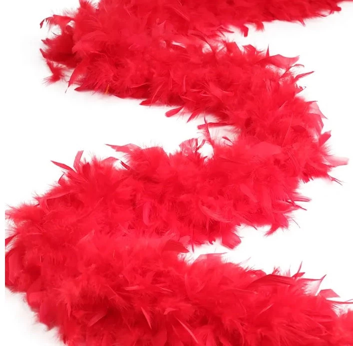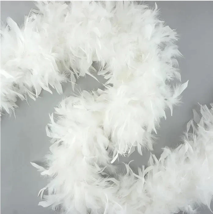 Chandelle Boa Heavy is one of our fullest boas just right for that glamorous look. 2 yd piece (approx 7″ diameter) NOTE: Color may vary. No guarantee on color fastness of dyed feathers.