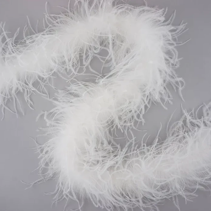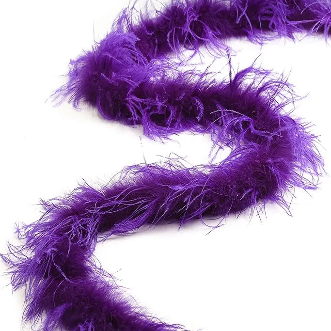 Ostrich Boa is our finest boa with an alluring and provocative texture. This boa adds a soft, beautiful touch to your costume, dress or party wear. Will not lose feathers. 3 ply boa. 2 yd piece. NOTE: Color may vary. No guarantee on color fastness of dyed feathers.