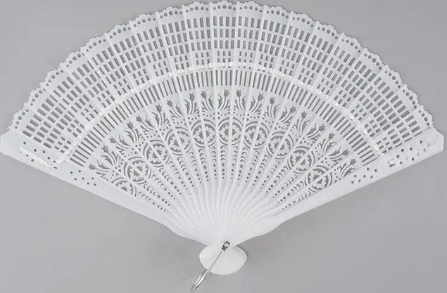 Plastic Stave Fan is a folding fan in an eggshell colored plastic. Can be used alone, or add feathers for a Vegas look! 8″x14″